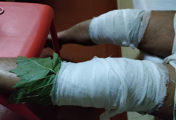 A warm medicated paste is applied over a clean leaf of a suitable medicinal plant and used as a bandage over the affected area, as instructed by the treating physician, mainly used in inflammatory conditions. Duration: as per the treating physician