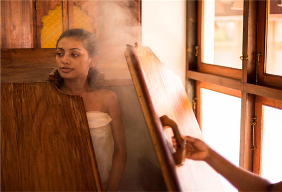 Steam bath is a commonly used therapy, done after Abhyangam, wherein medicated/ herbal steam is used to enable perspiration, to alleviate toxins through sweat, relieve stress, improve circulation and smoothen muscles. Duration: 10 to 15 mins