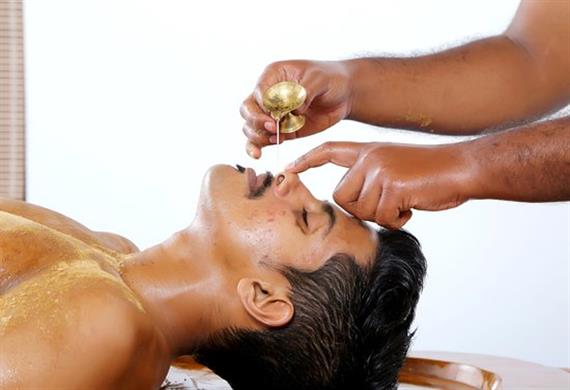 It is one among the five major procedures ideally indicated for diseases above the shoulder, like head and neck. A practice that encourages nasal administration of medicinal powders or medicated oil, chosen as per the state and stage of the ailment. Duration: 30mins